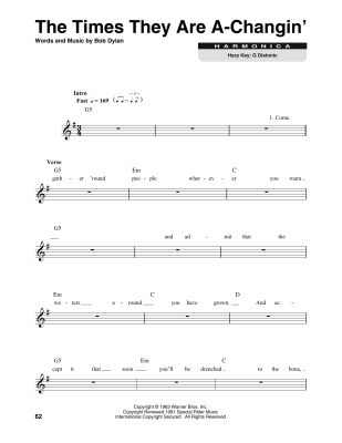 The Times They Are A-Changin' - Sheet Music for Bob Dylan