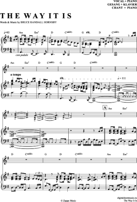 The Way It Is - Sheet Music for Piano and Voice Bruce Hornsby