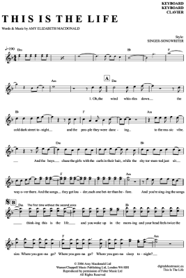 This is the life - Sheet Music for Keyboard Amy Macdonald