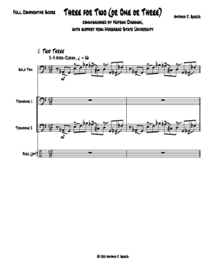 Three for Two (or One or Three) - Sheet Music for Trombone trio solo trombone, 2x trombone percussion opt. Antonio Garcia