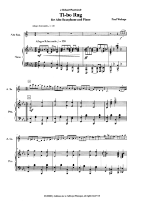 Tibo Rag - Sheet Music for alto saxophone + piano Paul Wehage