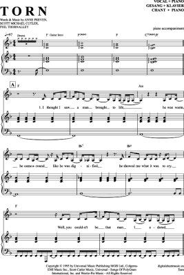 Torn - Sheet Music for Voice with Piano Accompaniment Natalie Imbruglia