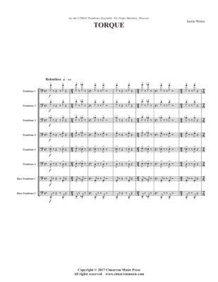 Torque - Sheet Music for Trombone ensemble 1-8 trombones Justn Writer
