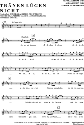 Tränen Lügen Nicht - Sheet Music for Alto Saxophone Michael Holm