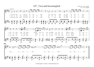 Treu und herzinniglich - Sheet Music for guitar + vocals unbekannter Verfasser