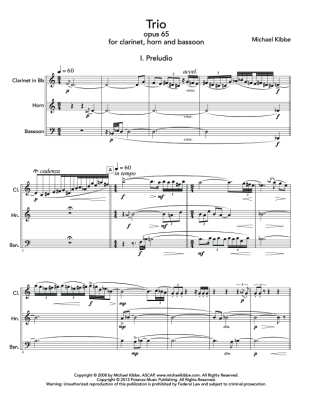 Trio, Op. 65 - Sheet Music for trio clarinet, horn and bassoon Michael Kibbe