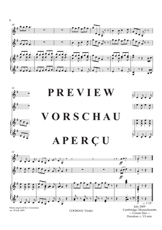 Triolet (2009) for (baroque) violin, (baroque) oboe, and harpsichord was written for and is dedicated