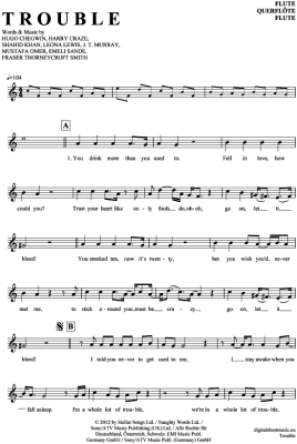 Trouble - Sheet Music for transverse flute Leona Lewis