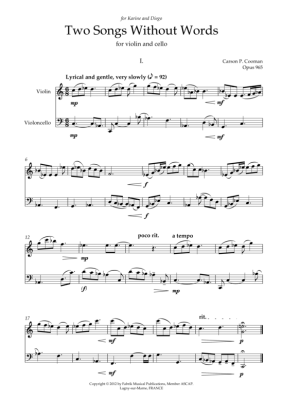 Two Songs Without Words - Sheet Music for Duet for violin + violoncello Carson Cooman
