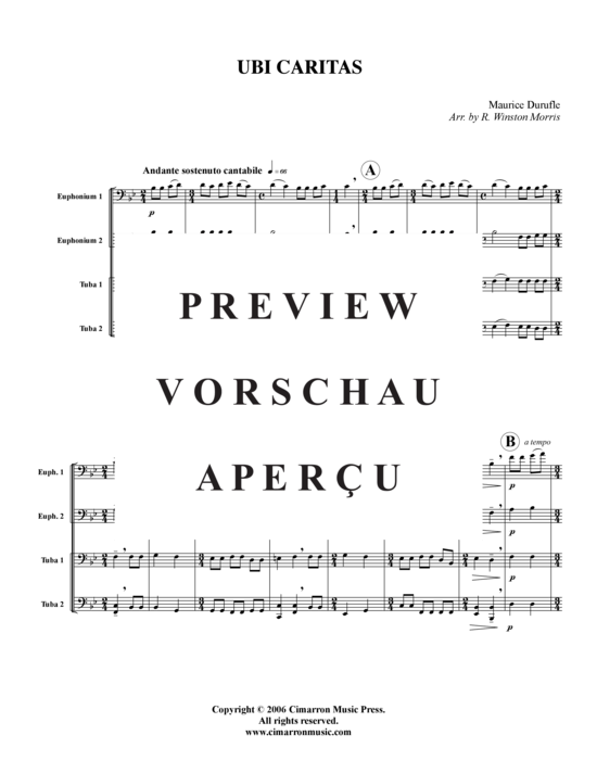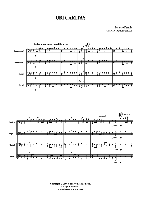 Ubi Caritas (Tuba Quartet: 2x Baritone, 2xTuba)