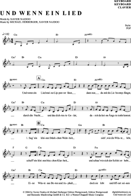 Und wenn ein Lied - Sheet Music for Keyboard Söhne Mannheims