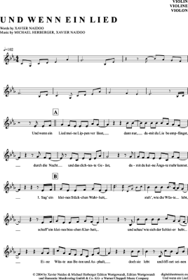 Und wenn ein Lied - Sheet Music for violin Söhne Mannheims