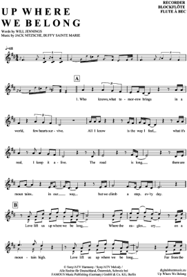 Up where we belong - Sheet Music for recorder Joe Cocker / Jennifer Warnes