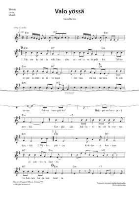 Valo yössä - Sheet Music for Tuomari Nurmio