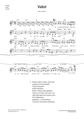 Valot - Sheet Music for Rauli "Badding" Somerjoki
