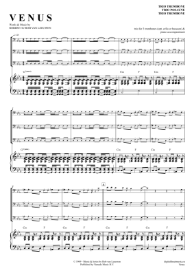 Venus - Sheet Music for Trombone Trio + Piano Shocking Blue