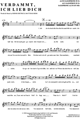 Verdammt ich lieb dich - Sheet Music for Alto Saxophone Matthias Reim