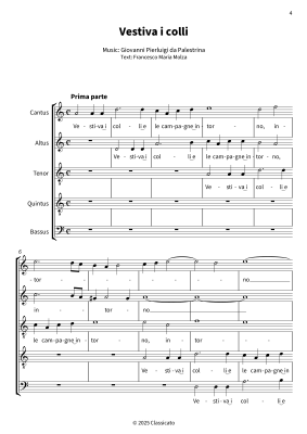 Vestiva i colli - A masterful madrigal of the Renaissance - Sheet Music for Mixed choir/ensemble 5-part CATQB Giovanni Pierluigi da Palestrina