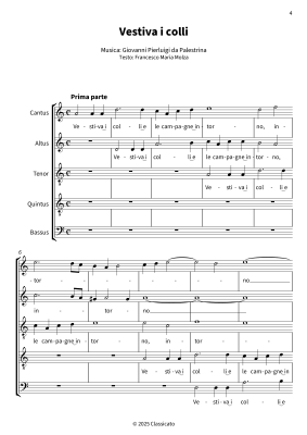 Vestiva i colli - Un madrigale magistrale del Rinascimento - Sheet Music for Mixed choir/ensemble 5-part CATQB Giovanni Pierluigi da Palestrina