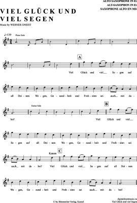 Viel Glück Und Viel Segen - Sheet Music for Alto Saxophone Volkslied