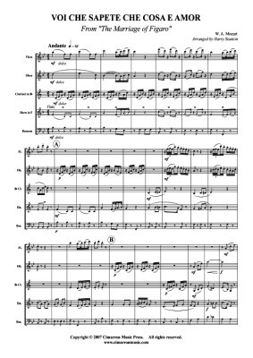 Voi che sapete che cosa e amor - Sheet Music for woodwind quintet W. A. Mozart (aus: Figaros Hochzeit)