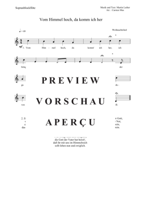 Vom Himmel hoch, da komm ich her - Sheet Music for soprano recorder solo Martin Luther