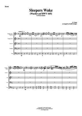 Wachet Auf (Sleepers Wake) - Sheet Music for Brass quintet J. S. Bach (BWV 645)