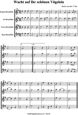 Wacht auf ihr schönen Vögelein - 4 BFL - Sheet Music for 17.Jahrhundert