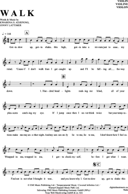 Walk - Sheet Music for violin Kwabs