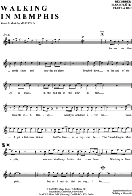 Walking in Memphis - Sheet Music for recorder Marc Cohn