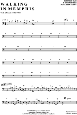 Walking in Memphis - Sheet Music for Bass Guitar Marc Cohn