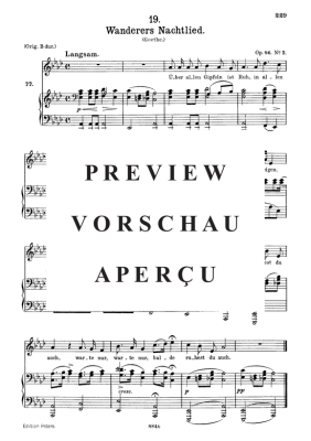 Wanderers Nachtlied D.768, Über allen Gipfeln ist Ruh - Sheet Music for Medium Voice and Piano Franz Schubert