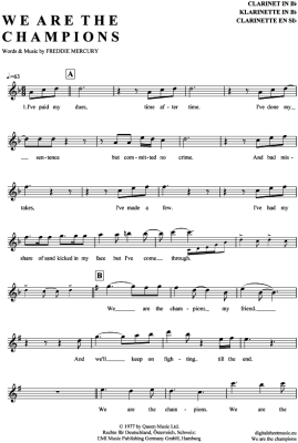 We are the champions - Sheet Music for Clarinet in B-flat Queen