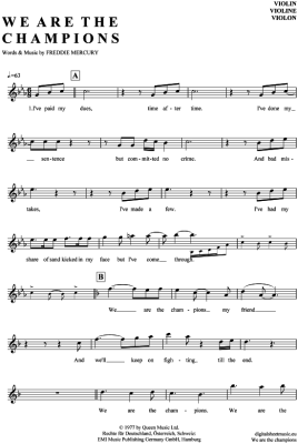 We are the champions - Sheet Music for violin Queen