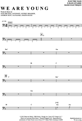 We are young - Sheet Music for Bass Guitar Fun