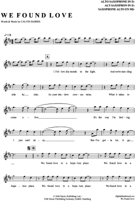 We found love - Sheet Music for Alto Saxophone Rihanna feat. Calvin Harris