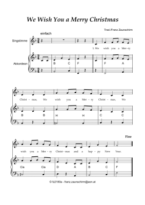 We Wish You a Merry Christmas - Sheet Music for Accordion and vocals Traditional