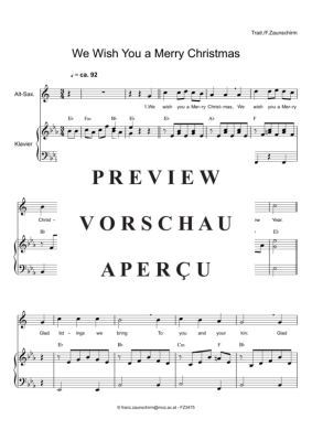 We wish you a Merry Christmas - Sheet Music for alto saxophone + piano Zaunschirm, Franz
