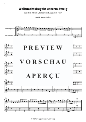 Weihnachtskugeln unterm Zweig - aus dem Album Barock und Jazz zum Fest - Sheet Music for Duet 2x alto saxophone Steven Tailor