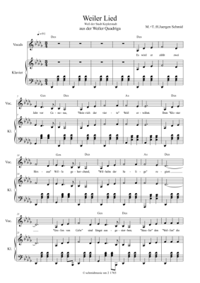 Weiler Lied - Sheet Music for voice + piano Hans-Juergen Schmid