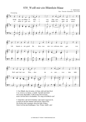 Weiß mir ein Blümlein blaue - Sheet Music for Piano and Voice 16. Jahrhundert