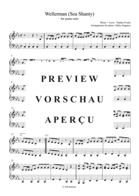 Wellermann Sea Shanty - Sheet Music for piano easy Traditional/Nathan Evans (Akiko Inagawa)