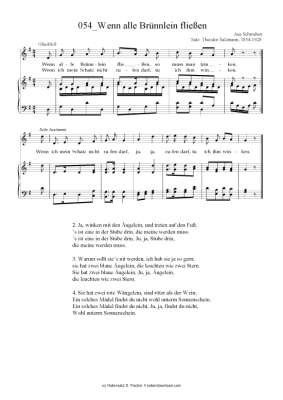 Wenn alle Brünnlein fließen - Sheet Music for Piano and Voice Aus Schwaben