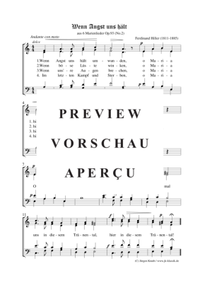 Wenn Angst uns hält (aus 6 Marienlieder Op.93 (No.2) - Sheet Music for mixed choir Ferdinand Hiller