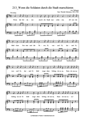 Wenn die Soldaten durch die Stadt marschieren - Sheet Music for Piano and Voice Aus Tübingen Satz: Theodor Salzmann, 1854-1928