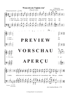 Wenn ich ein Vöglein wär´ (Flug der Liebe) - Sheet Music for mixed choir unbekannt / Satz: Jürgen Knuth, 1952-