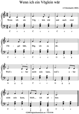 Wenn ich ein Vöglein wär - Sheet Music for accordion Kinderlied, Volkslied