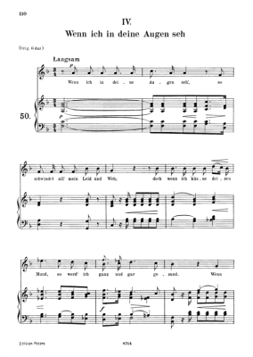Wenn ich in deine Augen seh Op.48 No.4 - Sheet Music for Medium Voice and Piano Robert Schumann