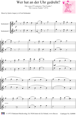 Wer hat an der Uhr gedreht? - Sheet Music for Recorder Duet TV Serie Pink Panther - Der rosarote Panther (1973)