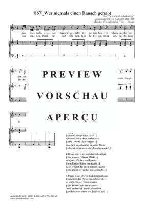 Wer niemals einen Rausch gehabt - Sheet Music for Piano and Voice Melodie: Wenzel Müller, Text: J. Perinet